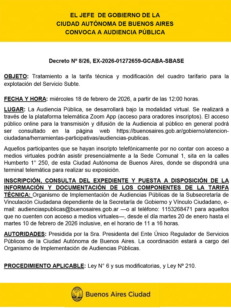 Audiencia pública para tratar la tarifa del SUBTE