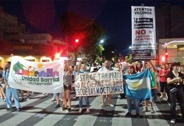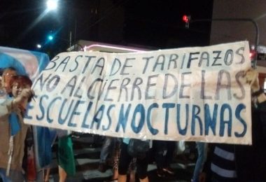 Ruidazo en la esquina de Mosconi y Artigas contra el tarifazo y el cierre de escuelas nocturnas