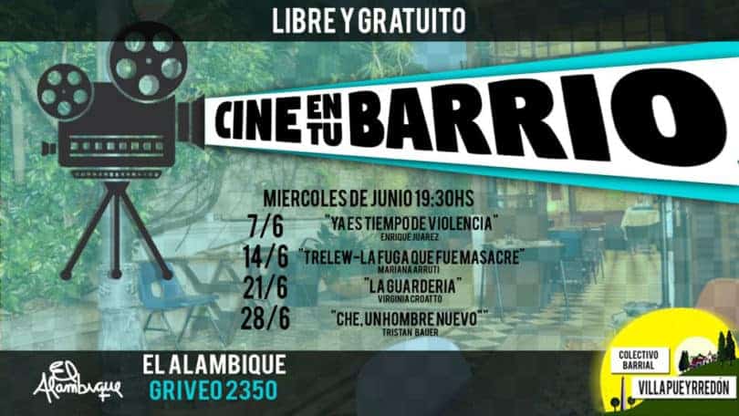 El Colectivo Barrial Villa Pueyrredón presenta el “CICLO DE CINE DOCUMENTAL ARGENTINO”. Todos los miércoles del mes de junio en el Centro Cultural El Alambique se proyectarán las películas “Ya es tiempo de violencia”; “Trelew, la fuga que fue una masacre”; “La Guardería” y “Ché, un hombre nuevo”. Contará con la presencia de sus directores para un posterior debate. Entrada gratuita.