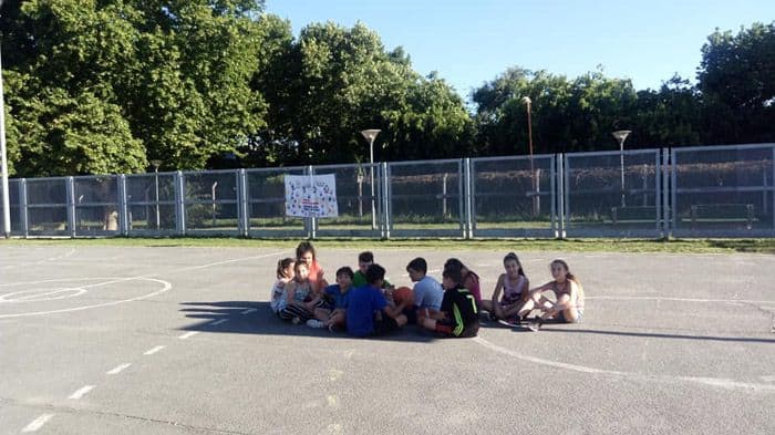 Hace dos años ofrecen a alumnos de la zona merienda y deportes de manera gratuita en la plaza de la estación (Franco y Condarco). “Las canchas públicas que utilizamos no están techadas y por ello debemos cancelar los entrenamientos los días de lluvia o de intenso sol y calor” manifiestan.