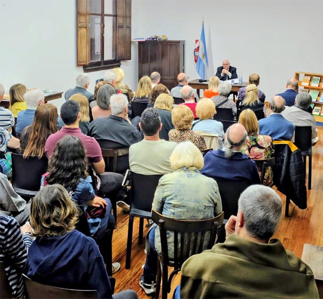 A continuación, el secretario de la Junta, Norberto Pedro Malaguti, inició la charla evocando la figura de Elina Pombo y su generosidad, así como los avatares que precedieron la inauguración de la Biblioteca.