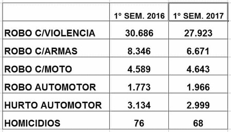 En cuanto a la cantidad de delitos registrados, vamos a hacer comparaciones entre el primer semestre de 2016 e igual período de 2017.